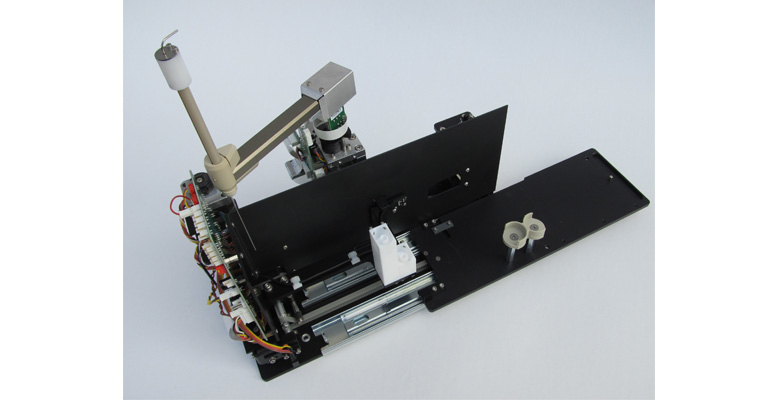 Zweiachssystem zur automatisierten Entnahme von flüssigen Proben aus mit Septen verschlossenen Probengefäßen.