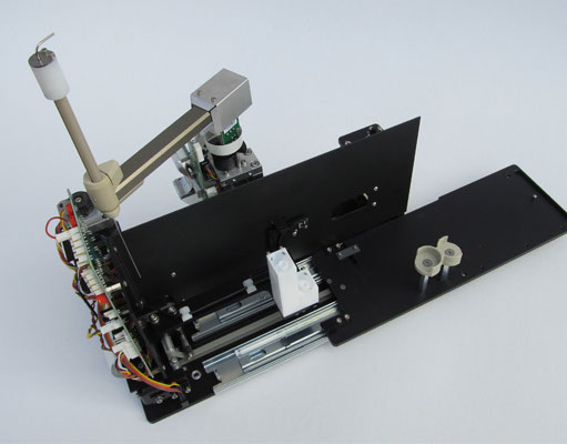 Zweiachssystem zur automatisierten Entnahme von flüssigen Proben aus mit Septen verschlossenen Probengefäßen.