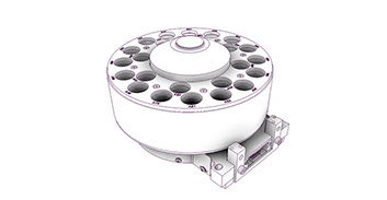 Ein temperierbarer Probenteller für bis zu 24 Probengefäße.