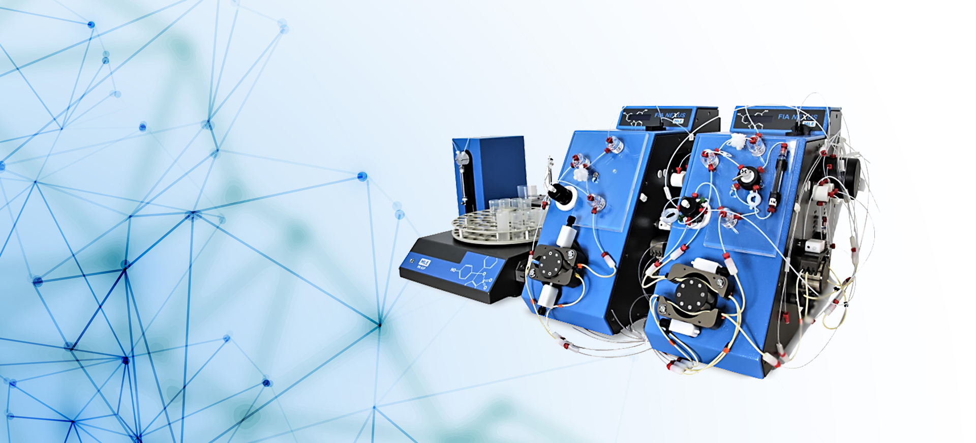 Unser FIA-System dient der automatisierten fotometrischen Bestimmung von Ionen in wässrigen Lösungen, Lebensmittelextrakten und Bodeneluaten. Dabei ermöglicht die Technologie der Fließinjektionsanalyse (FIA) die exakte Untersuchung von Proben unter Anwendung standardisierter Bestimmungsverfahren.